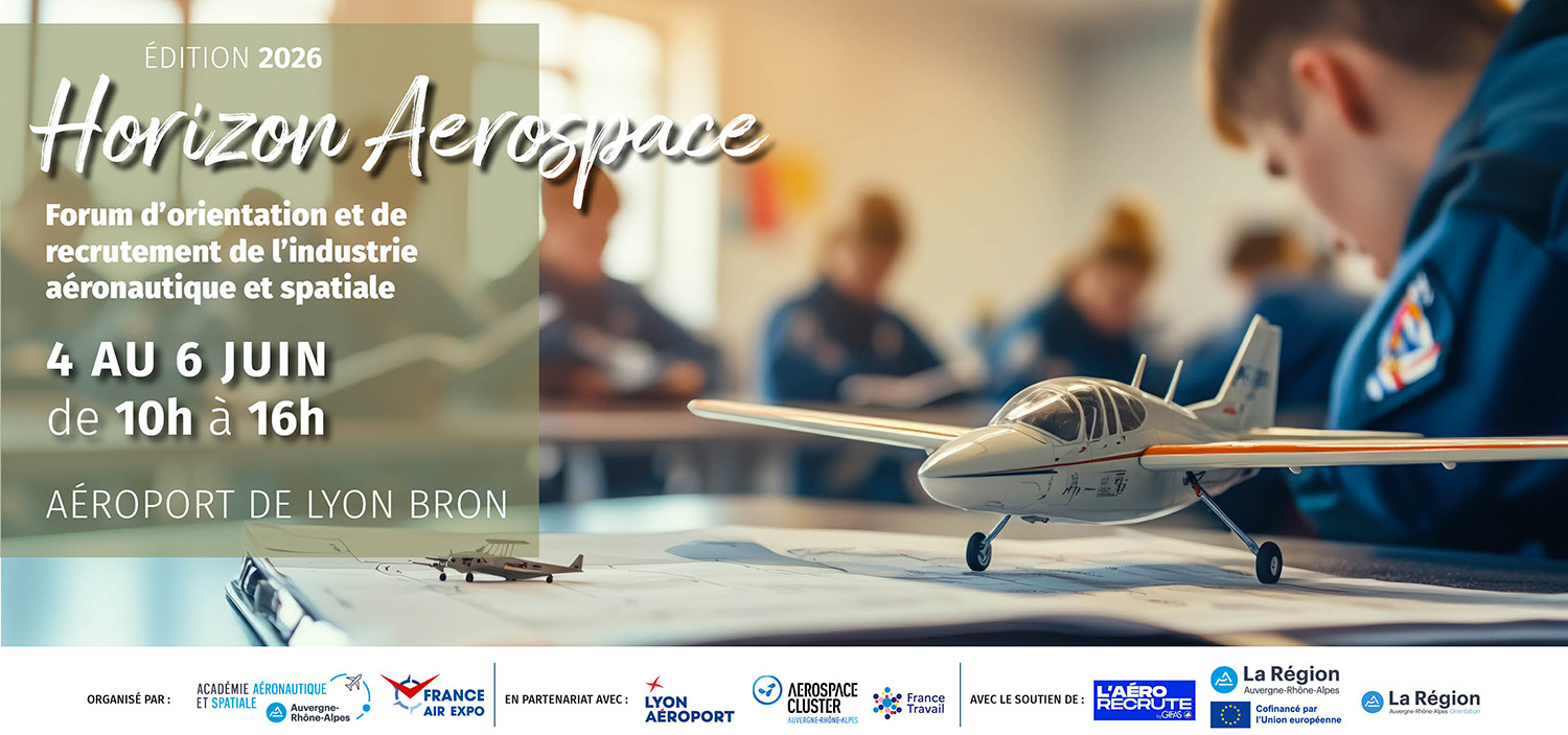 L’académie Aéronautique et Spatiale Auvergne-Rhône-Alpes organise avec France Air Expo, en partenariat avec Vinci Airport, le 4e forum Horizon Aerospace de Lyon; dédié aux métiers et aux formations de l’industrie aéronautique et spatiale.